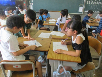 • 1-2の国語の時間では、夏休みにしたことをまとめる活動をしました。