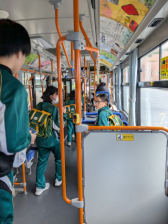 マナーを守ってバスに乗車。途中でお年寄りに進んで席を譲る姿が見られました。