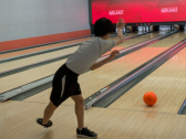素晴らしいフォームでの投球。ボウリングを2ゲーム楽しみました。点数は・・・秘密です。ストライクもスペアもいっぱい出ました。