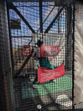 スポッチャのバッティングでは、120㎞の速さの投球に挑戦しました。