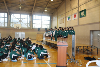 式終了後に3年生が歌われた卒業合唱の「群青」は、お世話になった先生方や、これまで育ててくれた父母に向けての感謝の言葉も織り交ぜながら歌われ、たいへん感動的なものとなりました。