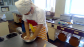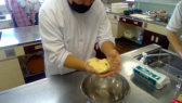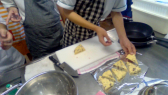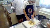 続けて、スコーンづくりをしました。ホットケーキミックス、バター、牛乳、チョコレートを混ぜて練り、トースターで焼きました。外はカリカリ、中はしっとりとしたおいしいスコーンができました。