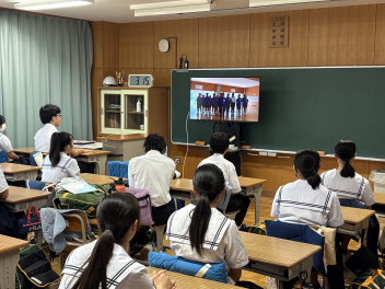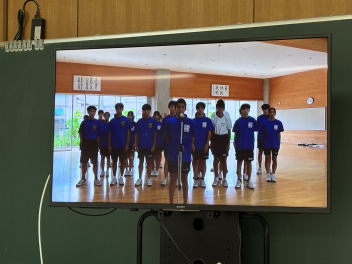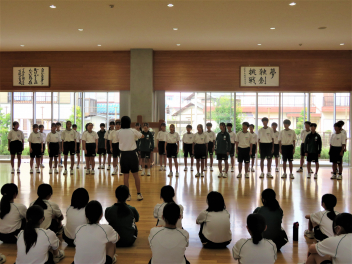1・2・3年生の代表生徒を中心にエールを送り、最後は全校で校歌熱唱を行いました。