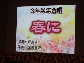 3年生全員で思いを込めて「春に」を歌いました。