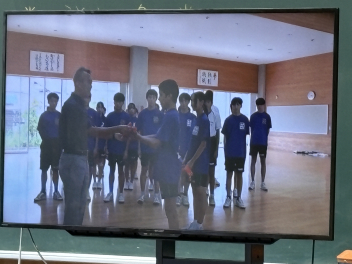 監督から選手が紹介され、校長先生から伝統の襷が手渡されました。