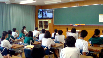 14日4校時、全校での情報モラル講座が行われました。