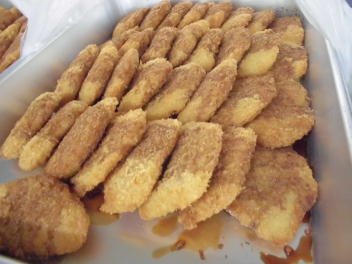 今日は揚げたかつに、ウスターソースやざらめを使った手作りのソースをかけました。