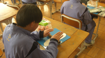 2年生の美術では「ホンモノそっくりに好きな物を作る」というテーマで