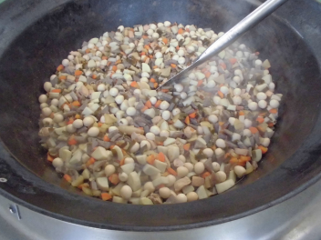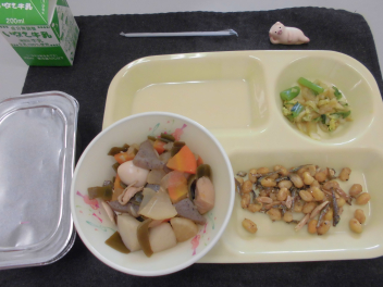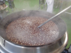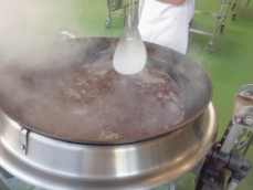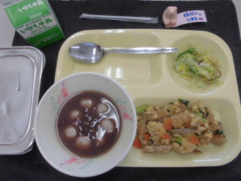 今日は、朝から給食室で、小豆をことこと煮込んで作ったおしるこに、白玉団子を入れました。