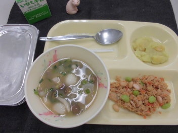 今日の献立には豆と栗を取り入れ、汁 ものの白玉団子はお月見をイメージしました。