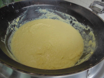 栗入りきんとんは、さつまいもを茹でて煮つぶし、味を調えてから栗を入れて作りました。