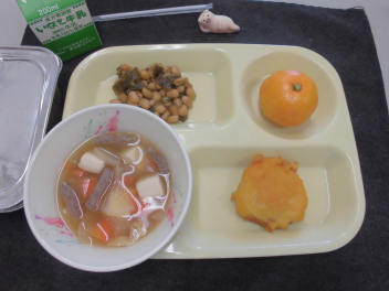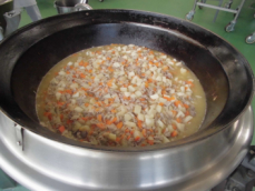 今日のスープは、おこげを入れて食べるおこげスープでした。
