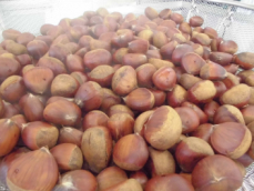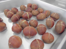 くりは、20~30分茹でた後、1つ1つ包丁で切れ目を入れました。