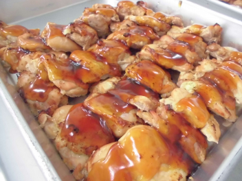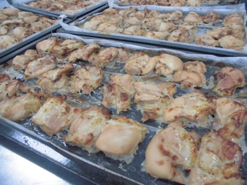 鶏肉の照り焼きは、北星中自慢のスチームコンベクションオーブンで焼きましたfrown