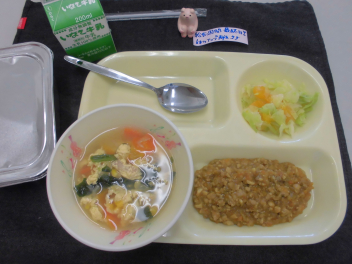 今日は、ドライカレーに、こっそり細かくしたレバーと大豆が入っていました。