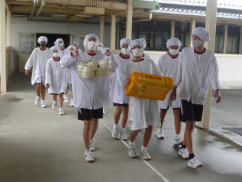 ランチルームで給食を食べる生徒は笑顔が多かったですsad