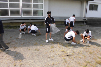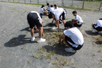 「あそこら辺にたくさん草が生えているからみんなできれいにしよう!」