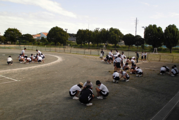 • 昼休み。秋のさわやかな空の下、たくさんの生徒たちが続々とグランドに集まってきました。
