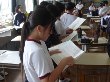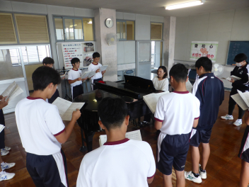• 細江中伝統の有志合唱団。今年度もたくさんの生徒が参加を希望し、昨日から練習がスタートしました。