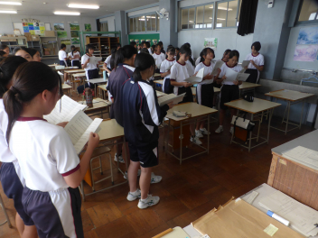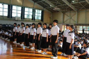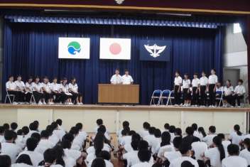 見守っている各学級の生徒たちも、立派な態度でした。各クラスともに新リーダーを中心にいい学級を創ってくれることでしょうsad
