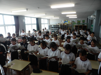 真夏は、ランチルームは気温が高くなってしまうため教室で給食を食べていました。