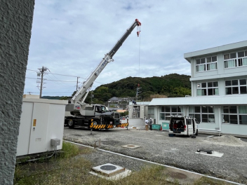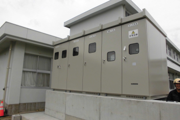 ここ数年、細江中学校では大規模な工事が続いています。一昨年、昨年は中館のエレベータ工事。それが終わってすぐ始まったのが現在も続いているキュービクルの新設工事