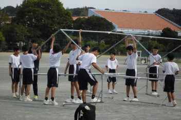 縦割り団による集団演技は、本番と同じ場所で練習できるのは15分だけ。各団に与えられた時間を有効に使って練習しようと、3年生中心に工夫して練習していました。3年生の必死さが1、2年生に伝わって、演技がどんどんよくなっていきます。