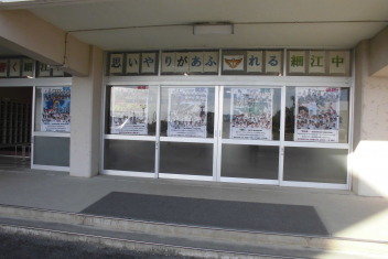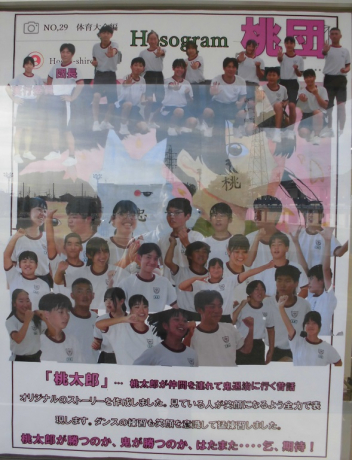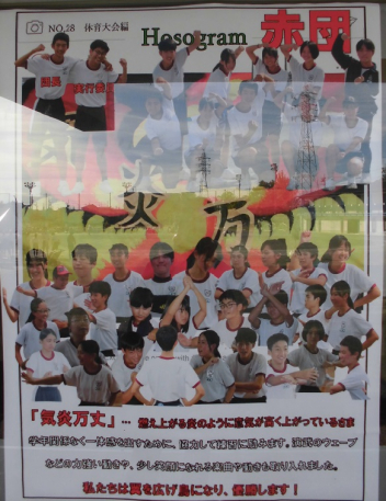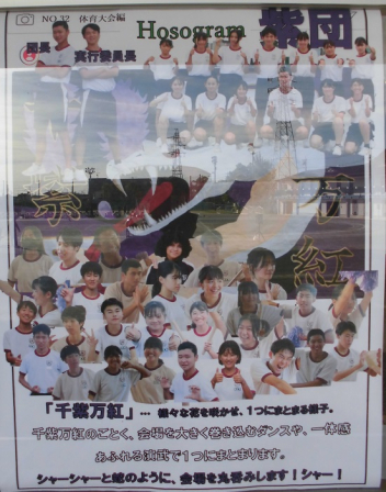 昇降口には、各団のテーマと意気込みを載せた「Hosogram」が掲示されています。