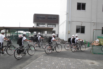 登校する生徒の顔も秋晴れのようにさわやかですsad
