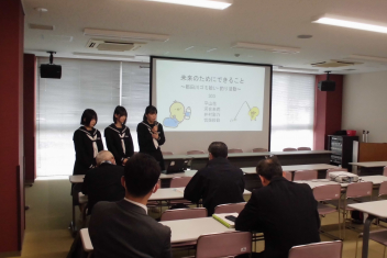 発表したのは、ホソ・フェス(11月21日に開催されたホソ・トレの発表会)の際に、学校運営協議会の委員の方によって選ばれた4つのグループの生徒たちです。