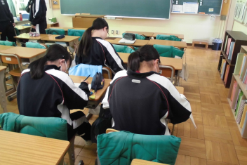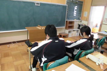 今回は実際に避難するのではなく、防災意識の向上を目的として、学年ごとに違う内容を各教室で行いました。