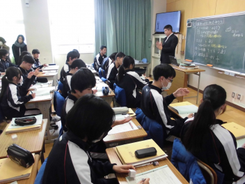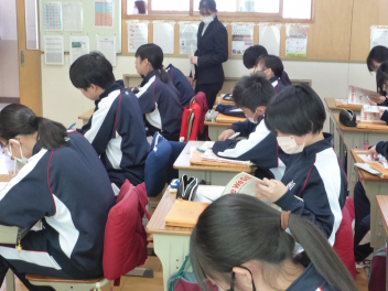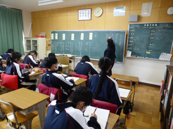 1年生の授業風景です。各学級、たいへん落ち着いた様子で授業に臨んでいましたsad保護者のみなさまがいらっしゃるため、普段より緊張しているように見られましたが、それぞれ学習としっかり向き合っていたと思います