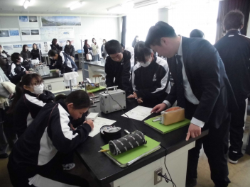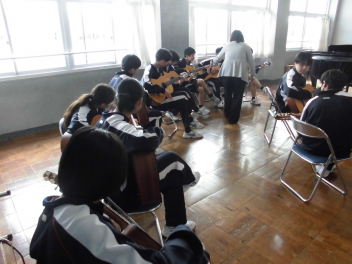 どうしてもやさしい押し方になる生徒が多いようです。上手く音がなるように何度も挑戦していました。