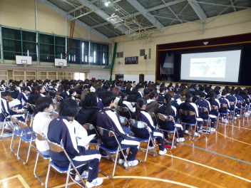 各学年の宿泊行事説明会の様子です。やはり興味関心が高いようで、生徒は真剣に耳を傾けていました。来年度、現1年生は浜松市かわな野外活動センターでの野外活動を、現2年生は京都・奈良・大阪への修学旅行を予定しています。どちらも校外活動のうえ宿泊も伴うため、これからの準備が非常に大切になります。ぜひ主体的・計画的に準備を進め、一生の思い出となるような活動にしてほしいと思います。
