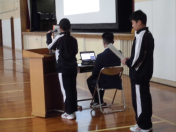学級運営委員会は生徒会活動の一環ですが、月に1回学級委員や班長が集まって、学校生活をどのように充実させていくか、課題があったらそれをどうするか等、自分たちで話し合って取り組んできました。