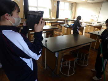 • 清掃の時間に、タブレットを持って写真撮影をしている生徒が何人かいました