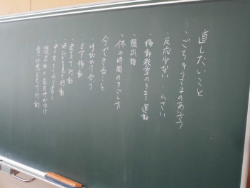 どの学年のどのクラスも、たいへん落ち着いた雰囲気の中で、担任の話を聞いていました。生徒の姿勢や目線がきちんと担任に向けられており、話のきき方もすばらしいと思いますsmileyぜひ、今後も「きき方」を磨いていって、「効く」「利く」にたどりついてほしいです。