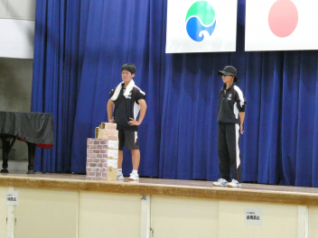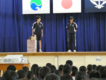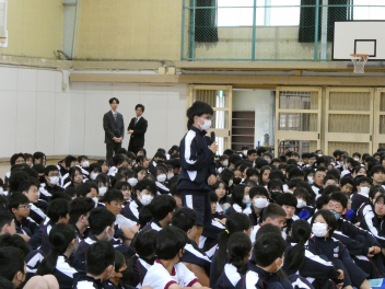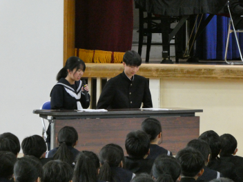 前期生徒総会では、生徒会執行部と専門委員会の委員長から、前期のそれぞれの活動についての提案がされました。