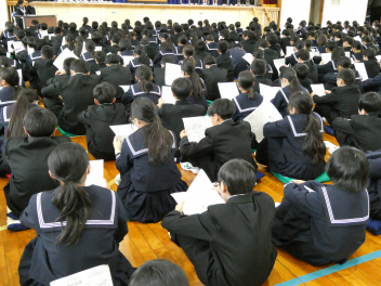 1年生は、「議案書」「承認」その他、初めて聞く言葉もあったと思いますが、真剣に会に臨む先輩たちの姿から学ぶものがあったのだと思います。とてもしっかりとした態度で参加できました。
