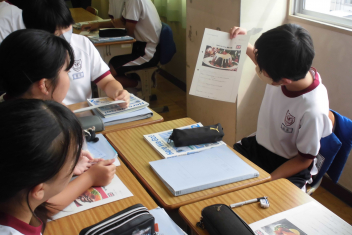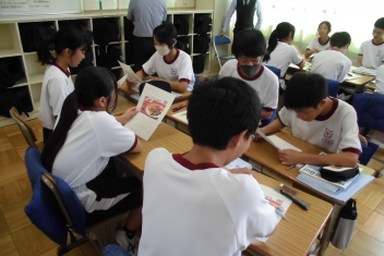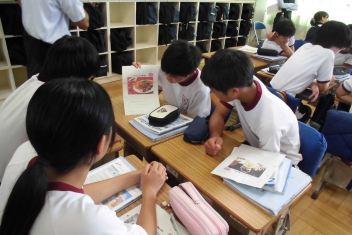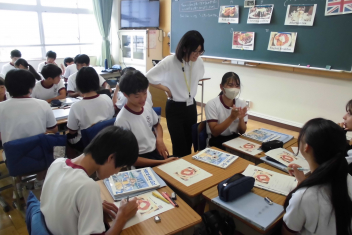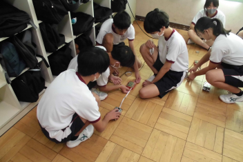 紫団(3-4、2-1、1-4)は、体育大会の様々な種目のコツやルールについて、3年生のこれまでの経験を生かして1、2年生に伝えました。縦割りの小グループになって実際に話をする時、まだまだ気まずさがある感じでした。でも、これから学年関係なく力を合わせていきたいので、もっと気楽に話せる関係づくりを進めていきたいです。