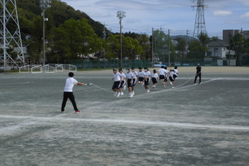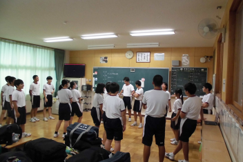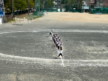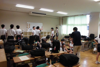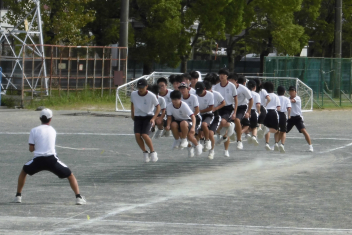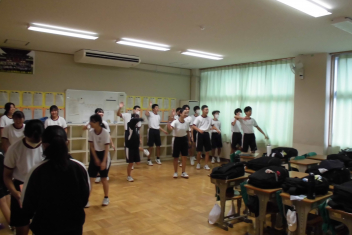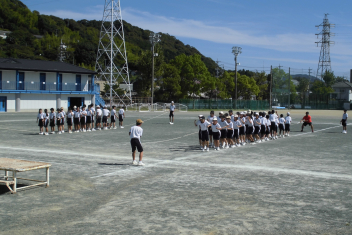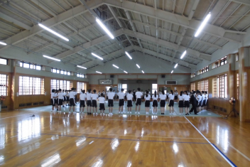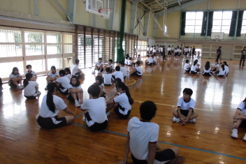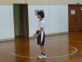 赤団(3-2、2-3、1-3)は、団結を高めるために、円陣を組んで一人ずつ、全員が目標を言いました。紫団の先生にも話してもらいました。前回も円陣を組んだのですが、その時よりもスムーズにきれいな円が組めたので、団結力は高まっていると感じました。これからもっともっと団結力を高めていけたらいいなと思いました。