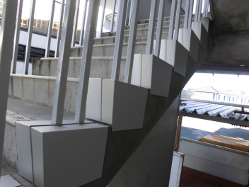 北館の2F・3Fには特別教室が並んでおり、その移動の際に生徒は外階段を利用します。