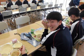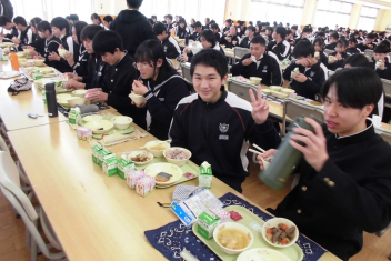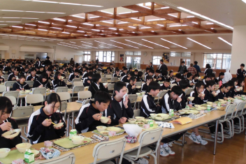 どの生徒も残り少ない細江中の給食を楽しんでいました。