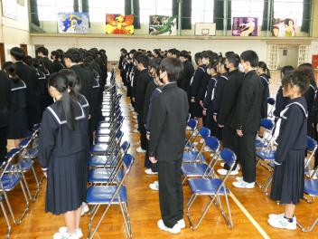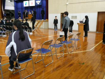 • 公立高校入試が終わり、3年生は学年運営に入っています。中学校3年間を、義務教育をしめくくるために、さまざまな活動をしていますが、最も力を入れているのが卒業式練習です。