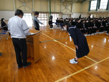 代表で挨拶してくれた生田くんは、原稿なしで3年生を代表して在校生への感謝と励ましを語ってくれ、さすが3年生というところを見せてくれましたsad
