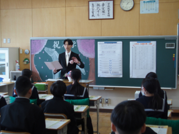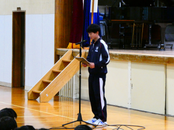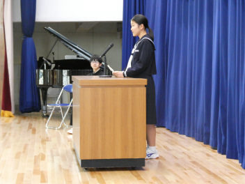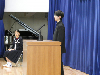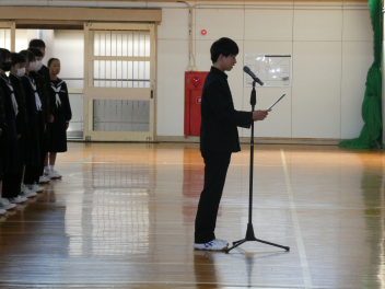 決意の言葉は、本当に素晴らしくて、新しい学年の意味、クラス替えで新たな仲間と共に成長することの価値、また、目標を持って部活や行事、学習に向かっていく決意など、まさに学年を代表しての思いをしっかりと述べていました。