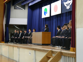 始業式では、新2年生、新3年生の代表の生徒が今年度の決意を述べました。
