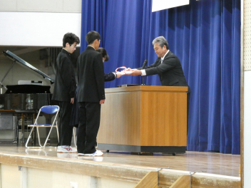 また、各学年の代表生徒に新しい教科書を授与しました。