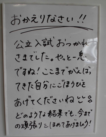3年生は、明後日公立高校の受験を控えている人たちがたくさんいますね。