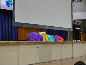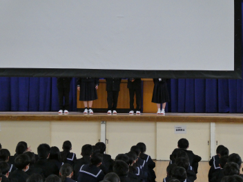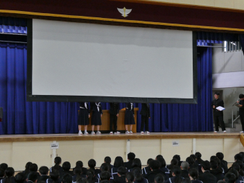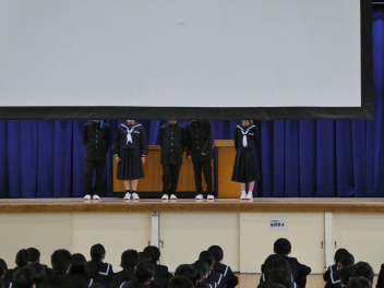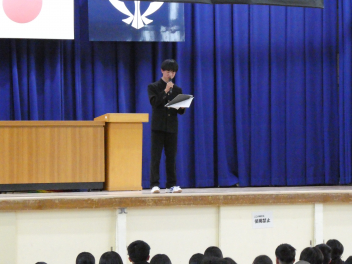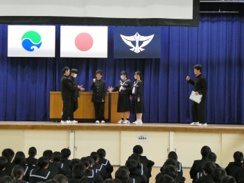 前期生徒総会では、生徒会執行部と専門委員会の委員長から、前期のそれぞれの活動についての提案がされました。